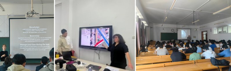师资共享是两校资源融合的核心支撑,为教学质量筑牢根基。两校通过高质量的特色课程共建,组建了国际化、高水准的联合教学团队,为高质量教学提供保障。在2025秋季学期的教学中,都灵理工大学选派Edoardo Picolli、Daniele Campobenedetto、Nicole De Togni、Camilla Forina组成的教学团队来我校与我校教师共同进行授课,教师团队梯队建设合理,教学经验丰富,为教学计划顺利进行提供坚实保障。在专业核心设计课程《智慧建筑设计-1》中,两校教师在教学设计中采取“设计节点整体控制+设计辅导全面覆盖”的方法,都灵理工大学的Daniele Campobenedetto与Camilla Forina两位教师对2024级学生进行设计任务解读、专业知识点讲授、设计成果检查总体控制,与建筑与设计学院5位教师对学生进行分组辅导,确保师生沟通顺畅、教学质量可控。