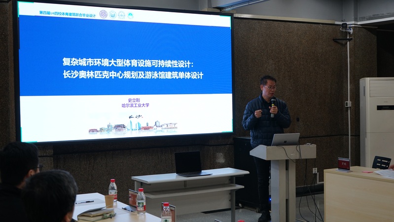 学术讲座环节,梅洪元教授作了题为《聚焦高质量发展的体育建筑可持续设计》的学术报告,结合行业前沿与工程实践,系统阐述了新时期体育建筑在功能创新、技术集成、文化表达、可持续发展等方面的发展趋势与关键议题,为参与毕业设计的师生带来深刻启发与专业指引。之后,钱锋教授针对本次毕业设计进行了《游泳馆设计》的专题报告,结合项目实践案例深入浅出地梳理了游泳馆建筑设计的原理和设计要点,开拓了参与师生的专业视野和设计思路。最后,由哈尔滨工业大学史立刚教授对本次设计任务及基地选址进行解读,进一步明确了本次毕业设计的任务要求和设计目标。
